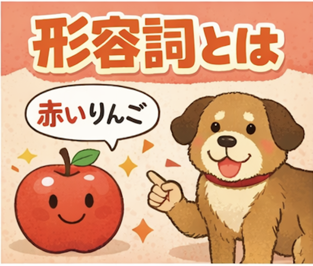 形容詞とは ■ 形容詞とは ■ 形容詞とは 形容詞は、名詞の状態や様子を表すことばだよ。「大きい」「美しい」「楽しい」など、物や人がどんな感じかを説明するときに使うんだ! ※ 形容詞は名詞を「どんな」と説明する言葉だよ。…
